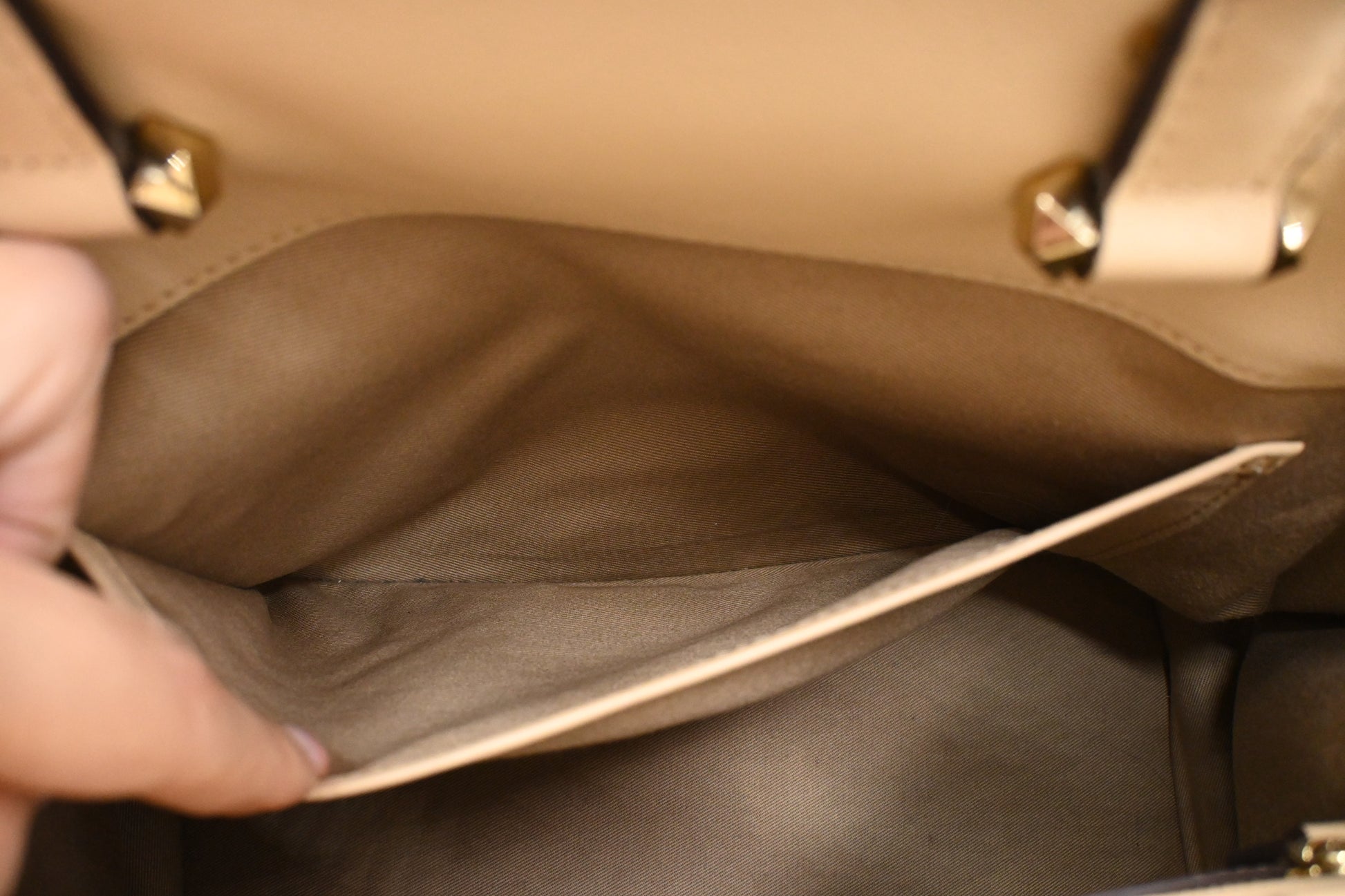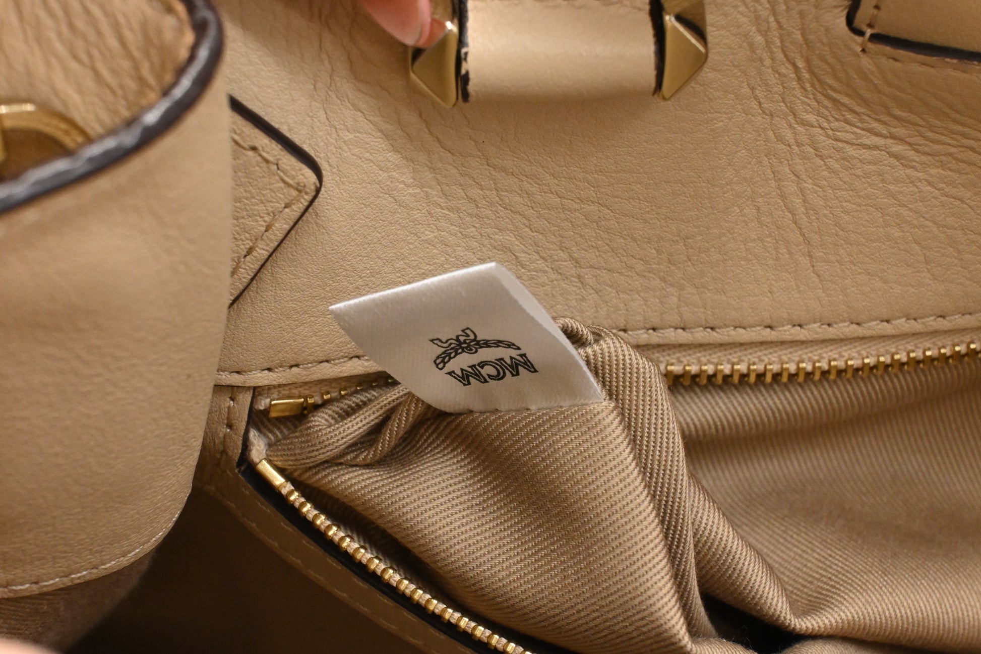 - Hardware: Champagne gold with light rub, smooth zipper