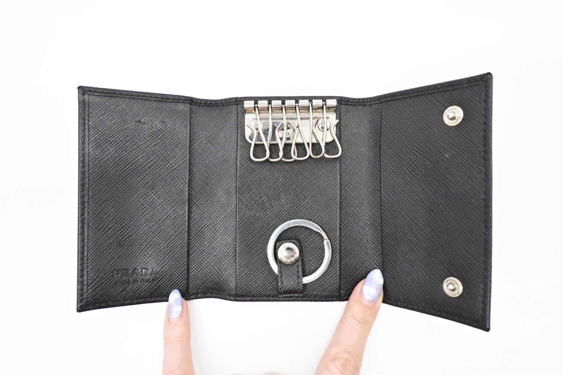 Prada 6 Key Case in Black Saffiano Leather