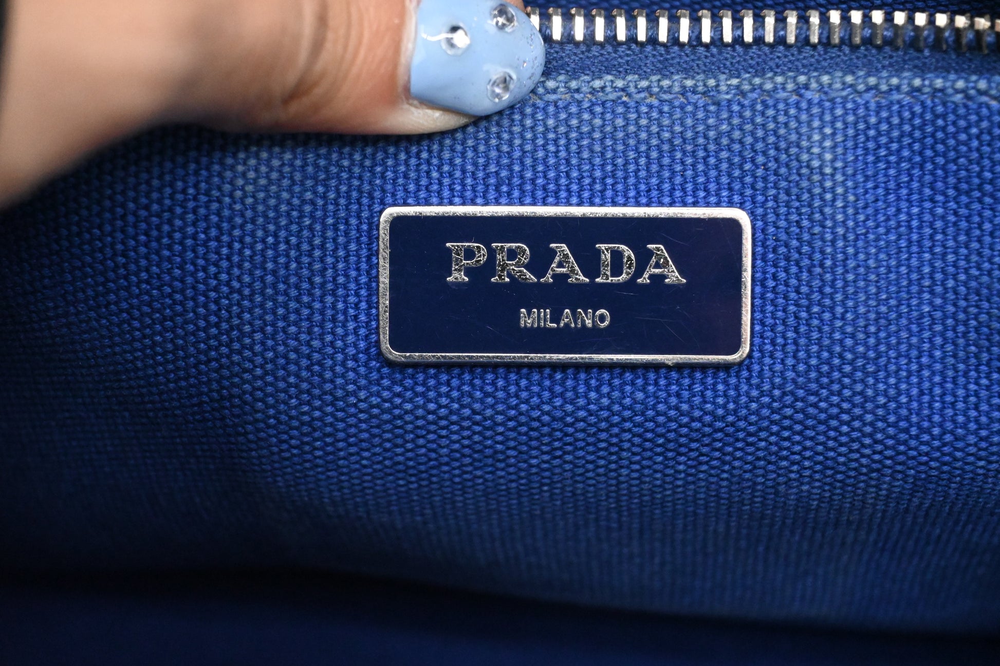 Prada Canapa PM in Blue Canvas