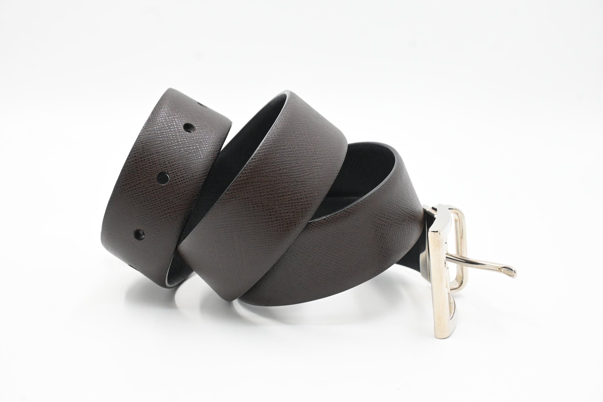 Prada Reversible Belt in Black and Brown Saffiano Leather